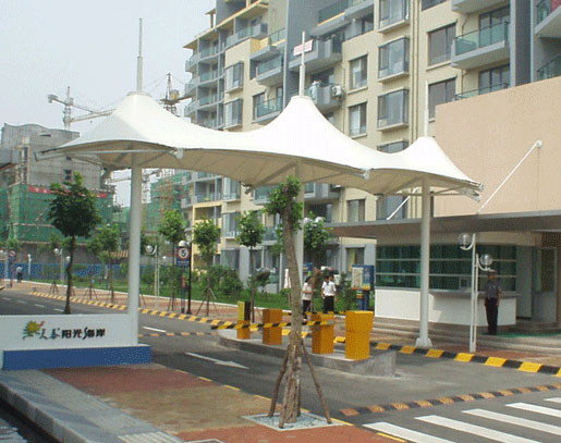 雨篷,網架等遮 陽產品。多年來堅持“以客戶為本”的經營理念,受到了 廣大朋友歡迎! 本公司的產品在國內同行業處于領先地位。主要以膜 結構、停車篷、高檔遮陽傘、傘、帳篷、遮陽篷、伸縮篷篷布為主。膜結構可分為:張拉膜、景觀膜、停車膜、進口膜材等。“靠質量取勝,服務立足”是我們永不放棄的信念;“以獨特創